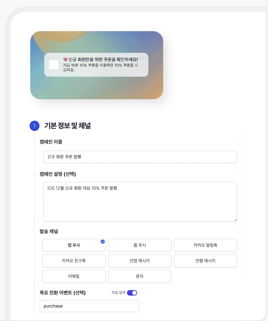 - 특정 이벤트(예: 상품 장바구니 담기, 결제 완료)를 캠페인에서 활용